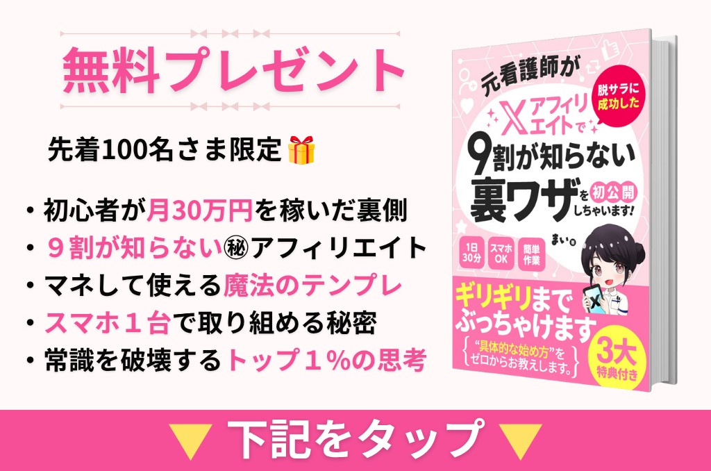まいの公式LINEに登録してくれた方限定で、「インスタアフィリエイトのノウハウ」を特別にお渡ししています。